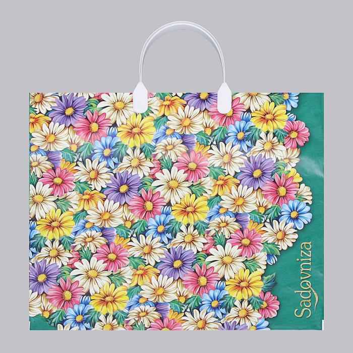 Polyethylene package with a plastic handle, thanks to the handles, the bag lasts longer. Durable and reliable with the original pattern.