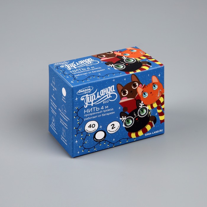 Garland “thread” 4 m, IP20, transparent thread, 40 LED, white glow, 2 modes, AAH3