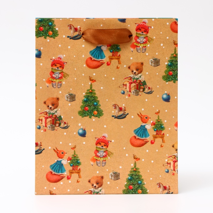 The gift New Year's package has the best sizes that allow you to pack various objects, from small souvenirs to large gifts. It can also be used to store and transport food products, such as sweet gifts for the Christmas tree, since the material from which it is made is safe for contact with food products.