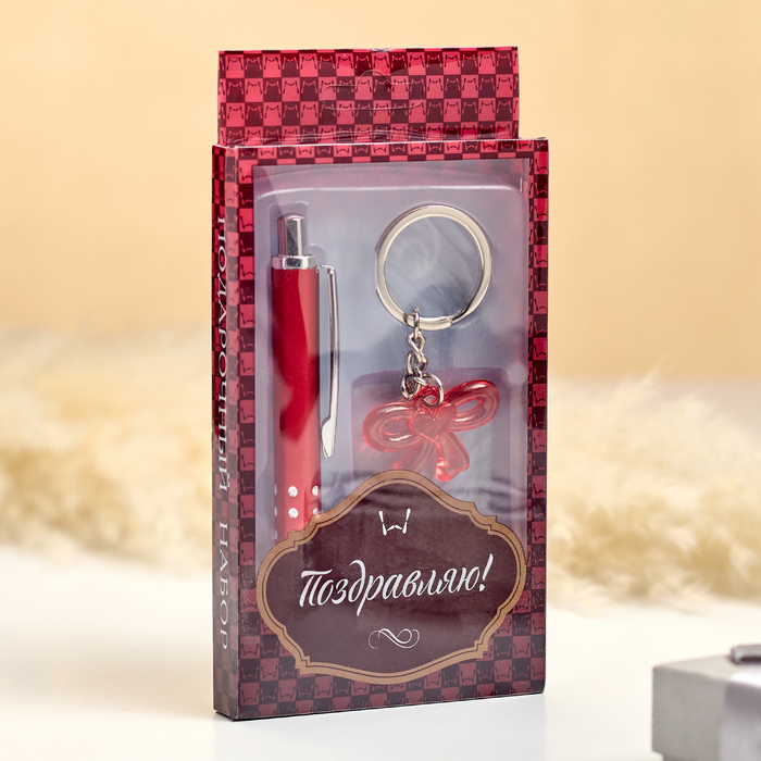 Gift set 2V1 (pen, keychain bow with heart) mix