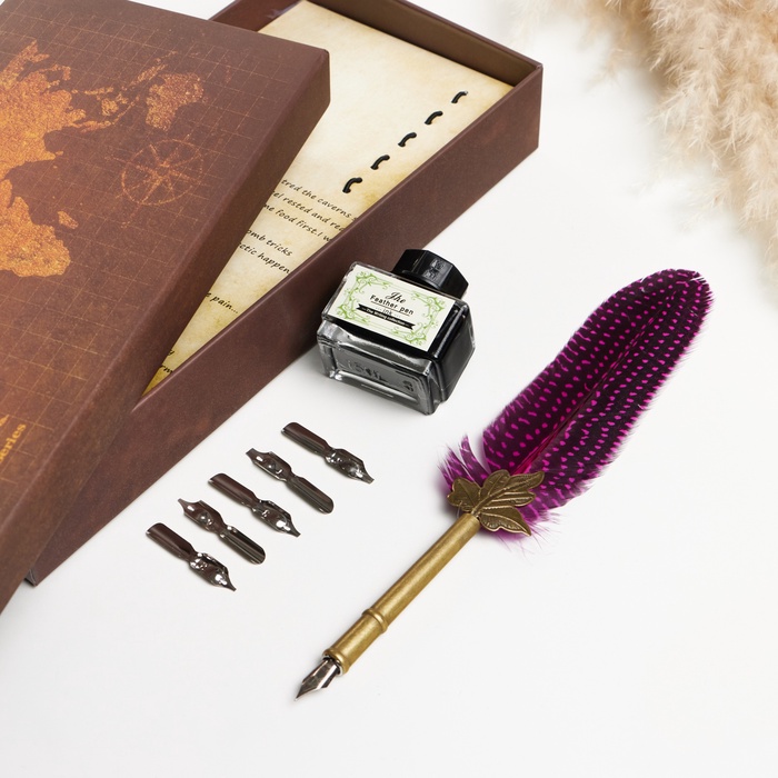Gift set 3B1 "Herbi": feathers, ink, tips, red