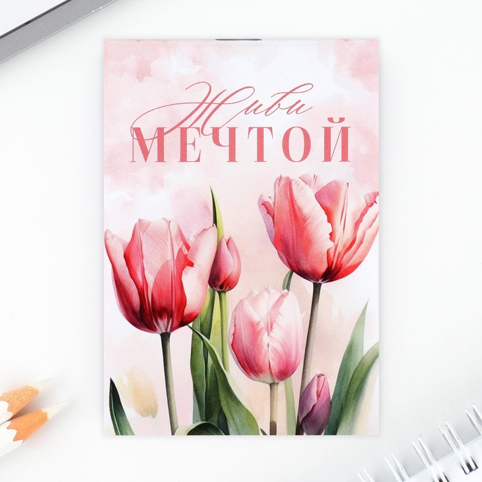 Gift set: notebook, handle-filter and eraser "Pink tulips"
