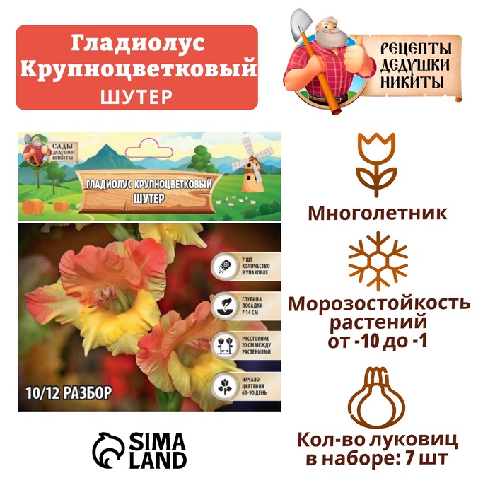 Gladiolus large-flowered "Shooter", rr 8/10, 7 pcs,