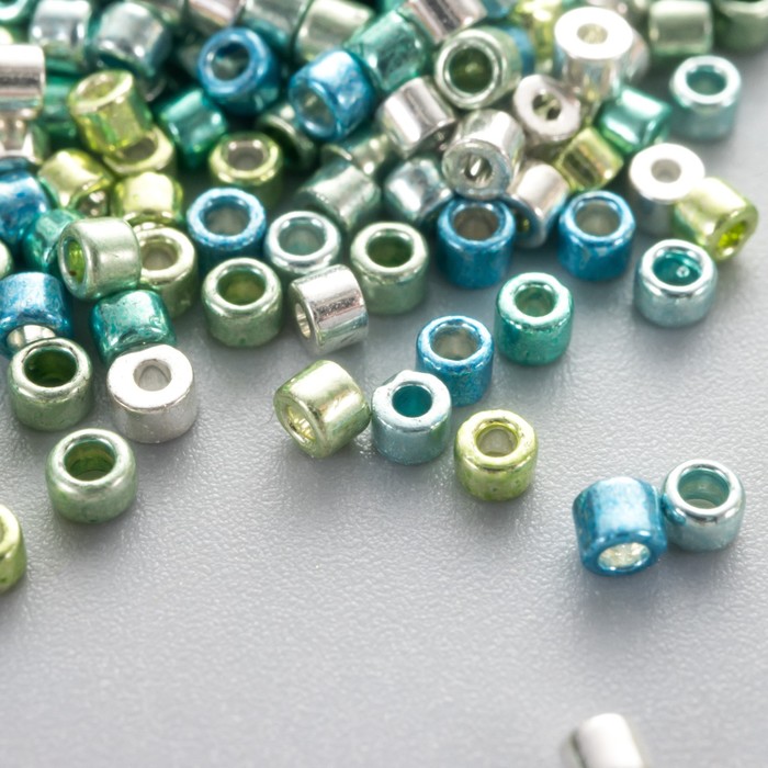 Glass bead 11/0 "cylinder. Blue-green gloss" 10 g