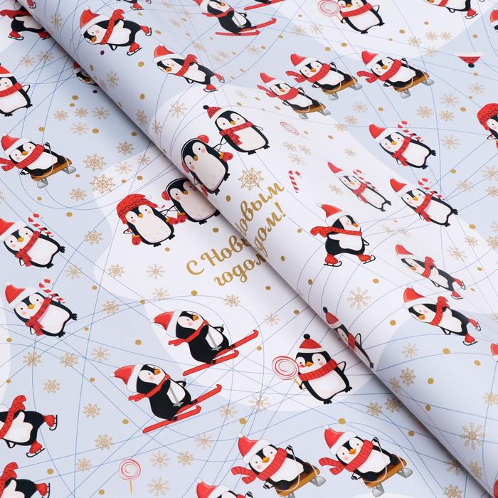 Glossy packaging paper "Penguins", 70 x 100 cm, 1 sheet