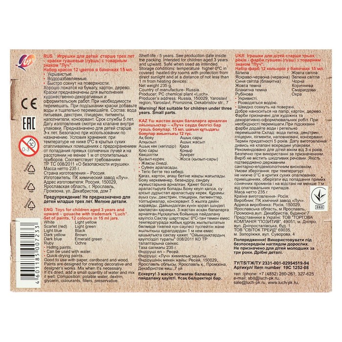 gouache 12 colors x 15 ml Zoo will help your child create beautiful bright pictures, invent incredible stories and embody them into reality, developing color perception, visual memory, imagination, fine motor skills, associative, analytical and creative thinking.