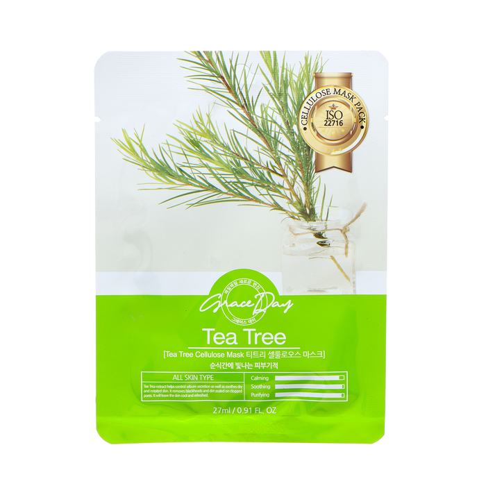 A fabric face mask helps to control the production of sebum, soothes and refreshes. Tea tree oil maintains a clean and healthy look of the skin, relieves irritation. Mask made of cellulose tightly adjacent to the skin and gives a feeling of comfort.