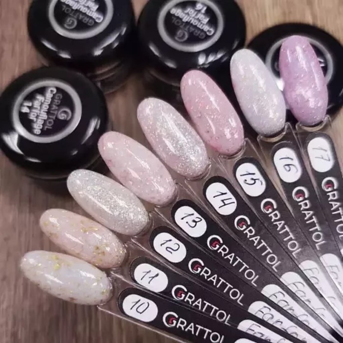 Camouflage gel of medium viscosity for modeling nails on the forms and tips by the converse method. Self -leveling. Suitable for work "without sawdust" and arched modeling. Perfectly even, dense coating with strengthening properties.