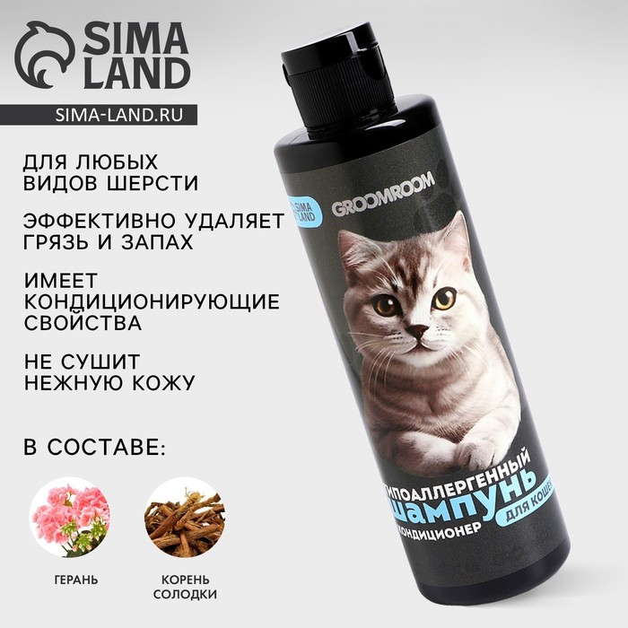 The shampoo is designed for animals with any type of wool. Specially designed hypoallergenic shampoo carefully cleanses the pollution and unpleasant odors, deeply moisturizes the skin and nourishes the wool.