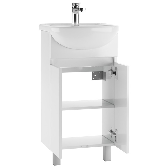 The cabinet is designed for use in the bathroom and is suitable for installation under the sink. The design of the cabinet is floor, which provides stability and reliability.