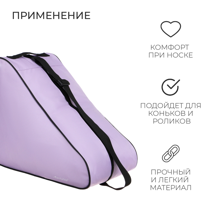The bag is designed for storing and transporting skates or rollers. Inside you can put concomitant equipment: covers on blades and protection. The bag has an adjustable shoulder belt and a handle for carrying.