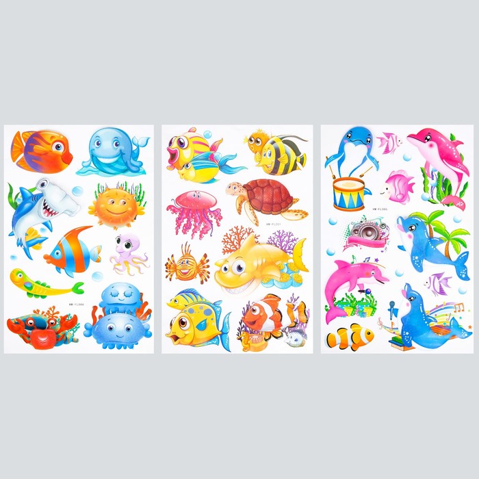 Interior plastic sticker 3D "Cartoon fish" mix 50x32 cm