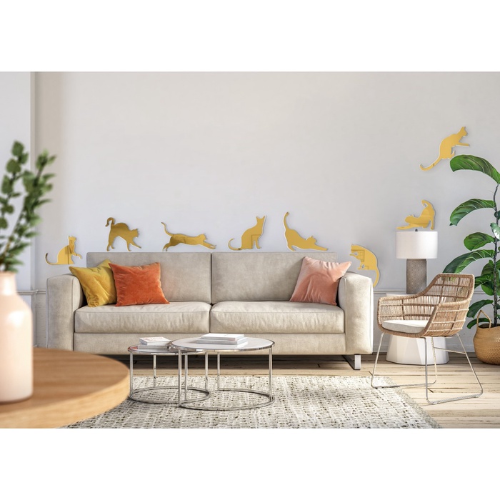 Interior stickers "cats", mirror, decor on the wall, set 8 pcs