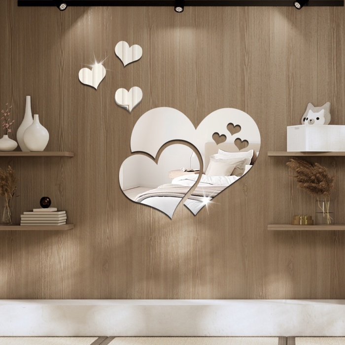 Interior stickers "hearts", mirror, decor on the wall, panel 22 x 28.5 cm, 5 email