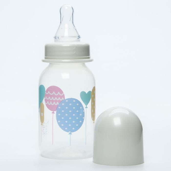 A bottle for feeding with a standard (narrow) neck is equipped with silicone milk nipple slow stream. Made of safe material - polypropylene. Such bottles are light, do not beat. Silicone nipples are elastic, which contributes to the development of the chewing apparatus, do not cause allergies. A convex, inconsistent scale has a convenient step of 30 ml.