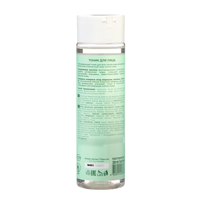 Our tonic contains highly effective hyaluronic acid, which provides deep moisture and restores the natural balance of moisture in the skin. Only a few uses of this tonic, and you will notice an amazing anti -aging effect!