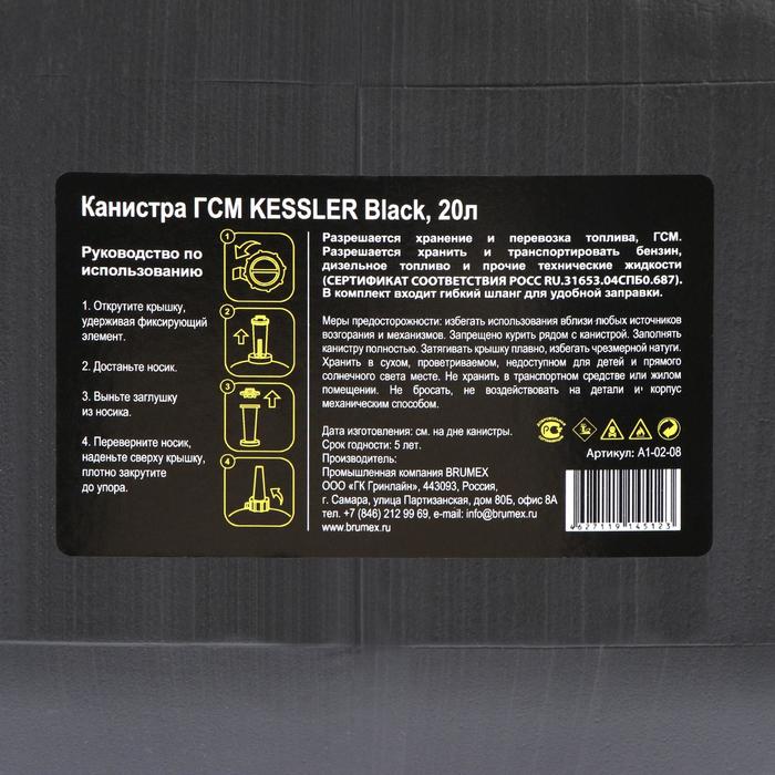 Kessler Kessler Premium canister is designed to store and transport fuel and fuel and lubricants. Made of Pand. Equipped with a lid with a lock and a gas storage.
