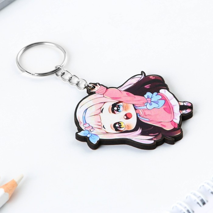 Key keychain wooden anime "in pink"