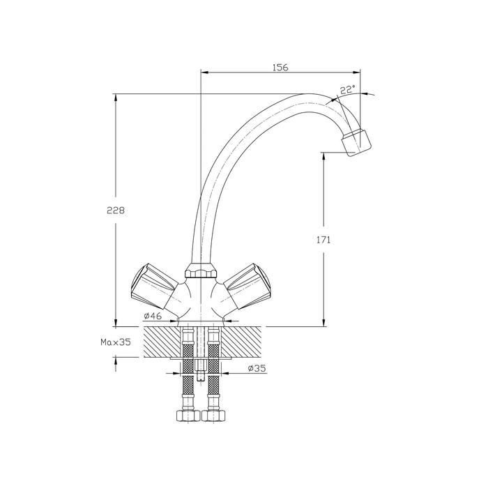 Kitchen mixer Rush Pioneer Pi7950-22, two-wound, chrome