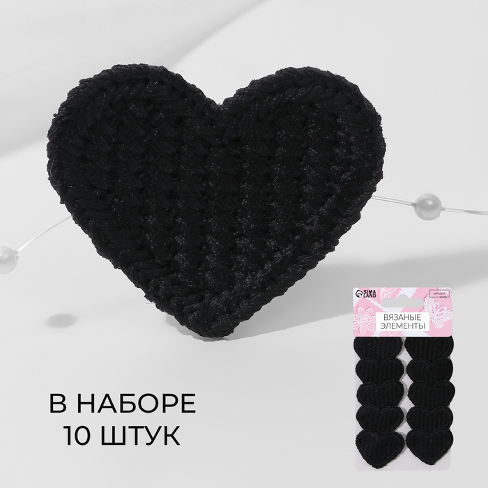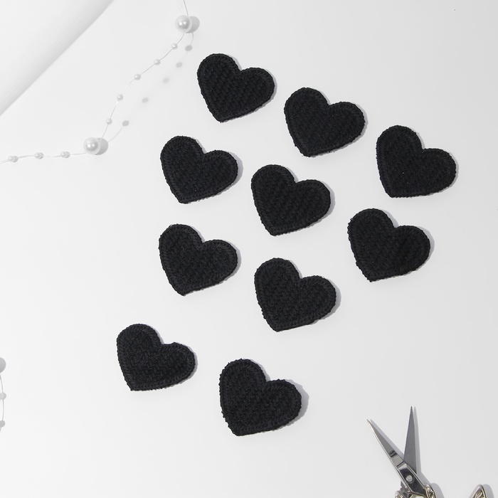 Knitted elements "Heart", 3.5 × 3 cm, 10 pcs, black color