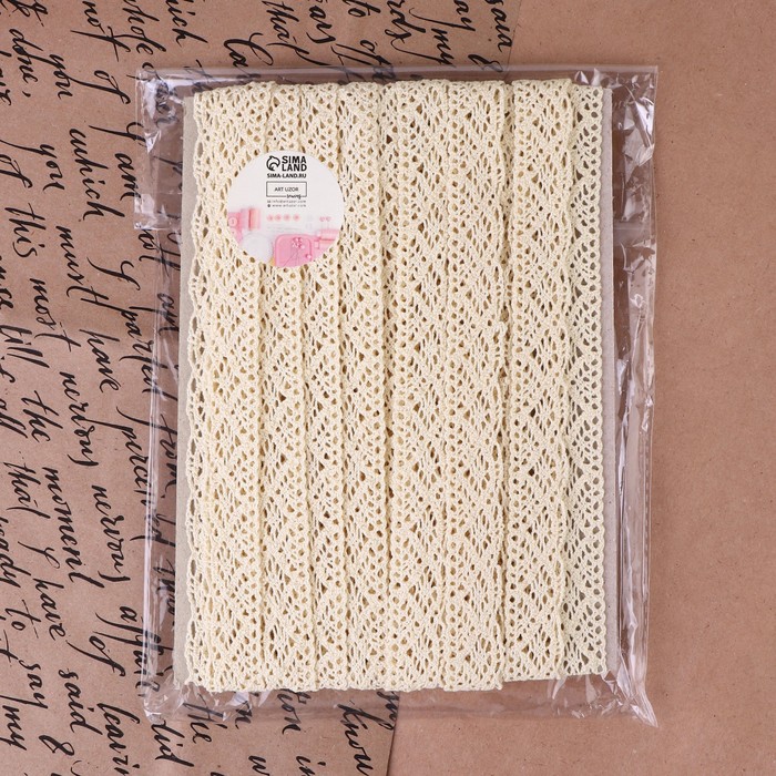 Knitted lace, 20 mm × 10 ± 1 m, beige color