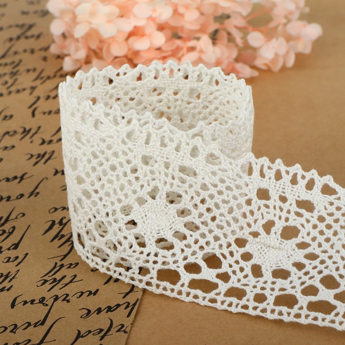 Knitted lace, 60 mm × 15 ± 1 m, fluid-white color