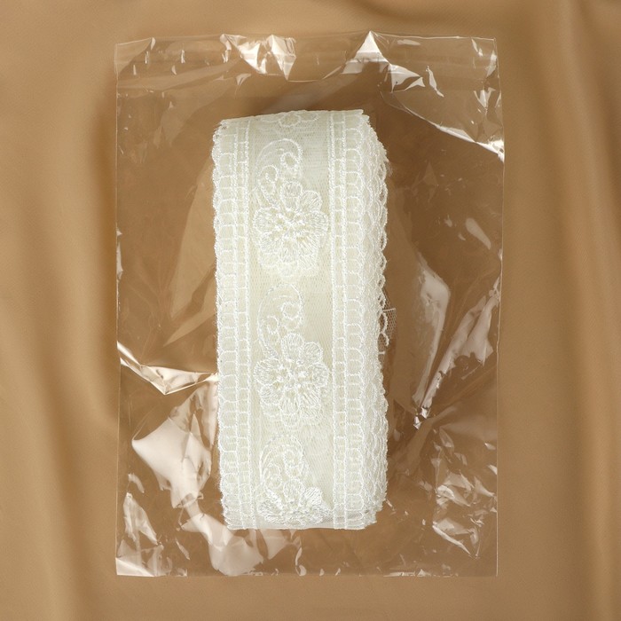 Lace on a grid, 50 mm × 11 ± 1 m, ivory color