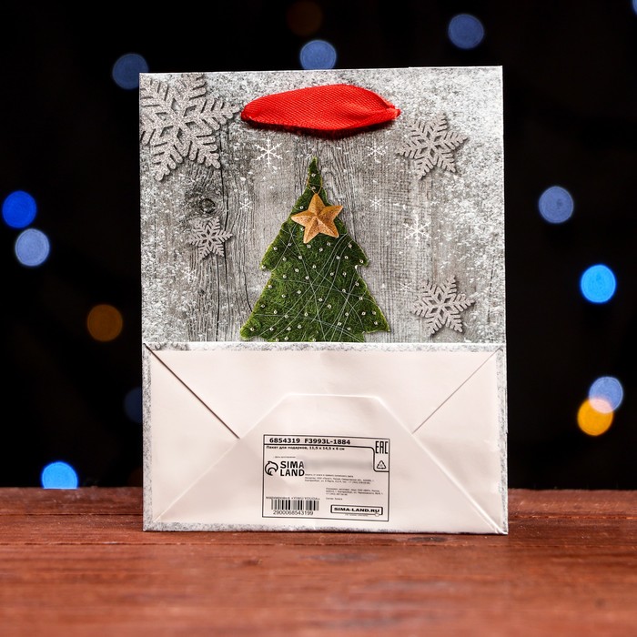 A stylish New Year's lamination package is used as a gift for a gift. Due to his original design and attractive appearance, he will create a festive mood for the recipient and will not leave it indifferent.