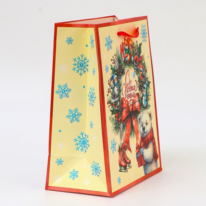 laminated New Year's package has the best sizes that allow you to pack various objects, from small souvenirs to large gifts. It can also be used to store and transport food products, since the material from which it is made is safe for contact with food products.