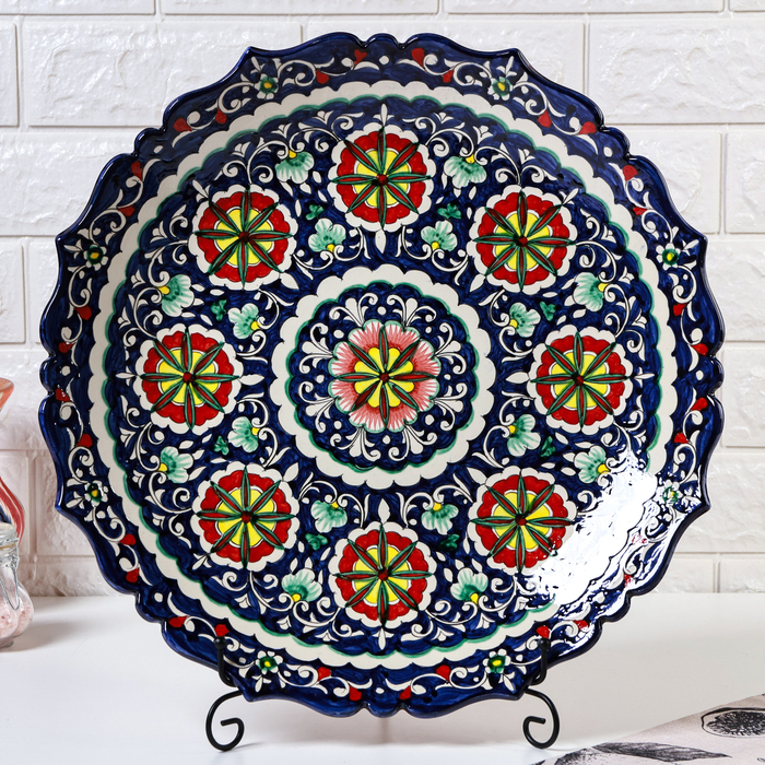 Largan Rishtan ceramics "Flowers", 41 cm, corrugated, blue