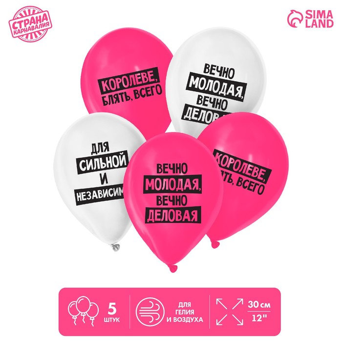 Latex balloon 12 "Queen", humor, 5 pcs.