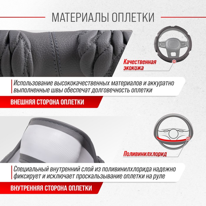 Leather braid, 6 pillows m gray Skyway, embossed Eco, S011022222