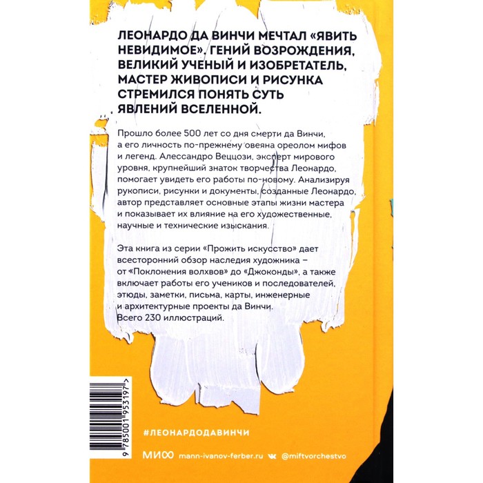 Alessandro Vutszosi, an expert of the world-class, the largest expert on Leonardo's work, helps to see his work in a new way. Analyzing the manuscripts, drawings and documents created by the great Italian artist, the author represents the main stages of the master’s life and shows their influence on his artistic, scientific and technical research. Da Vinci appears before us as a Creator and a researcher who does not know the restrictions in his attempts to “convey the harmony of all the proportions of nature” through art.