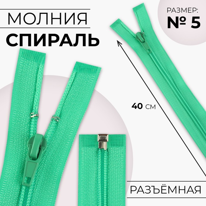 Lightning "Spiral", No. 5, detachable, automatic lock, 40 cm, green color