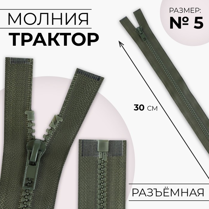 Lightning "Tractor", No. 5, detachable, castle machine, 30 cm, khaki color