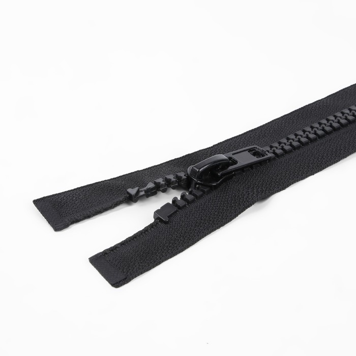 Plastic teeth do not abrupt. The design is wear -resistant, does not fade. The runner glides smoothly along the fastener.