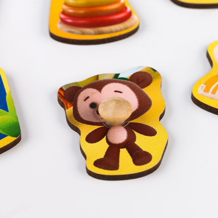 Join the funny summer adventure with a chicken pi! The educational game from the brand “Mapacha” offers you a game field and seven curly elements with images of toys and a favorite animated character. High -quality images are applied to wood, which guarantees their durability. Elements are ideal for small hands, it is convenient to take them and put them back in the frame.