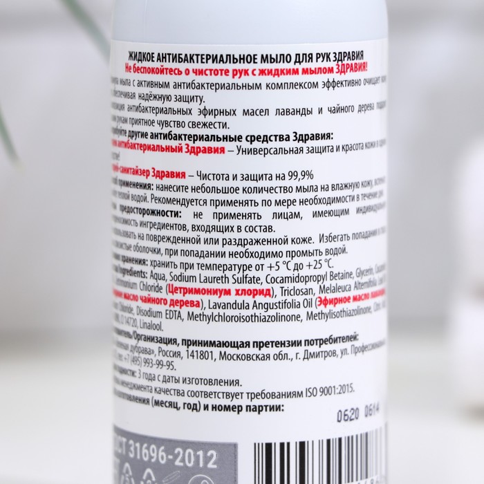 Do not worry about the cleanliness of hands with Liquid soap health®. The soap formula with an active antibacterial complex effectively cleanses the skin of the hands, providing reliable protection. The composition of antibacterial essential oils of lavender and tea tree will give your hands a pleasant feeling of freshness.