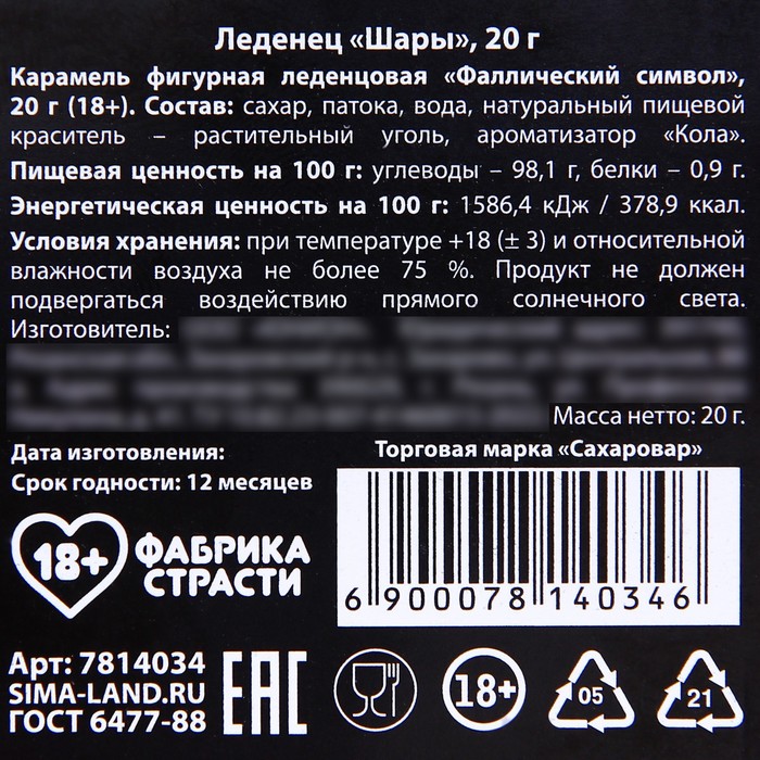Lollice "Balls", taste: Cola, 20 g. (18+)