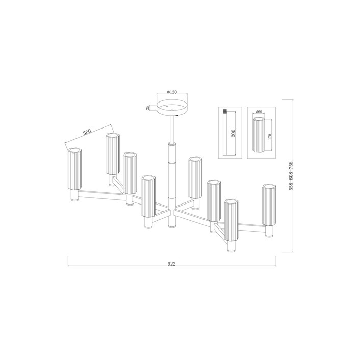 | Minimum height from the ceiling, cm | 60.8 |
