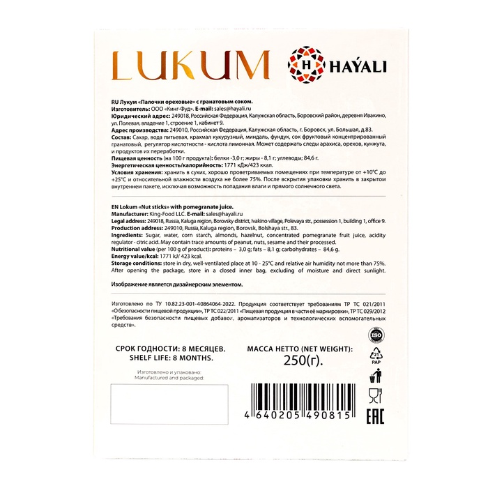 Packed in a beautiful and stylish box, Hayali sticks become excellent A gift for lovers of sweets, as well as an indispensable element of any table. Allow yourself to enjoy a unique taste and plunge into the atmosphere of the East Hayali - make every moment special!