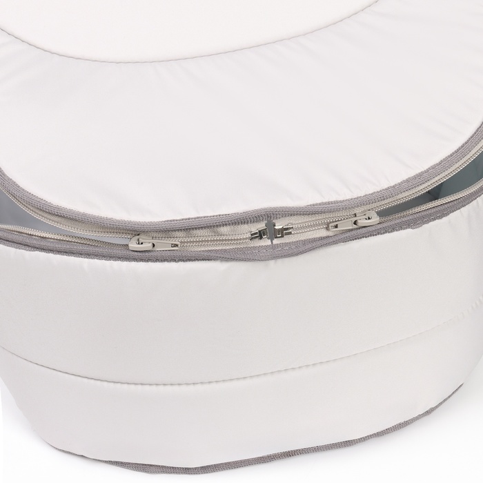 Luel-carrier made of raincoat fabric with a removable hood. The hood is attached to the bag for 3 buttons. The lid is removable, fastened to the bag on the detachable zipper. On the lid, a stitch of 2 My Figure lines is made. All sections are treated with edging braid. In the bottom of the bag there is a pocket for a hard liner. Tuffet lining, filler foam, synthetic winterizer. The sides of the cradle are not hard, especially, so that you can carry a carrier into a stroller. Size 30x68cm. Board height 16cm. The depth of the hood 16cm. Composition: P/E 100%.