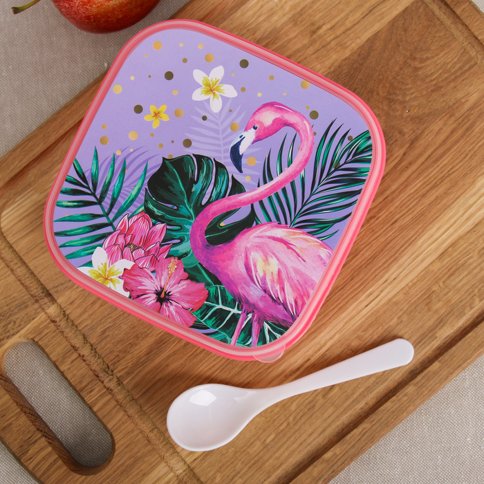 A sealed cover ensures the safety of the contents, and bright colors and colorful design on the lid make it expressive and fashionable accessory. The kit includes a plastic spoon, which makes it even more convenient to use.