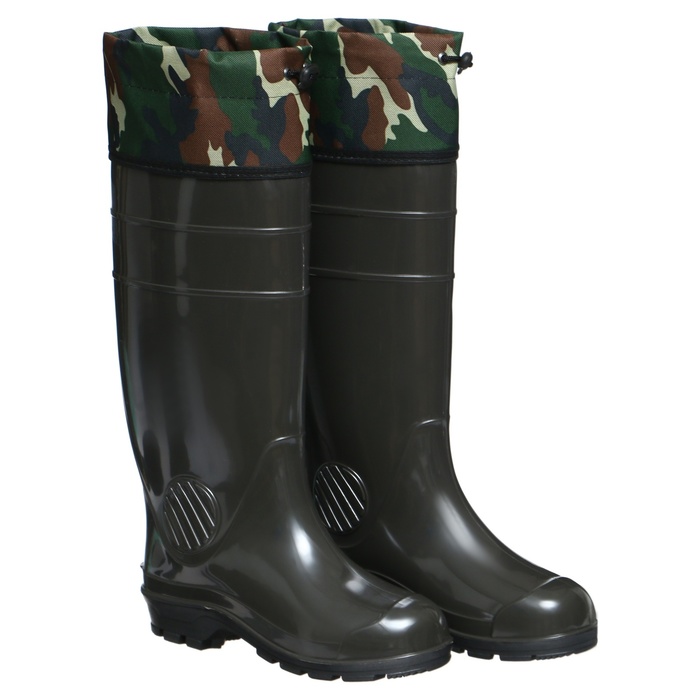 Male boots are made of PVC and designed to protect the legs from getting wet and pollution. Made using a single -component casting technology by hot molding, inside - a fabric coating. The tread of the sole has anti -slip properties. The boots are convenient and practical. The lower temperature limit is -5ͦ. There is a cuff (extension) from a water -repellent fabric with a latch. Performed using color textile stockings.