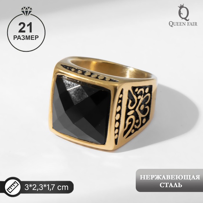 Male “ring” ring openwork, black color in gold, 21 size