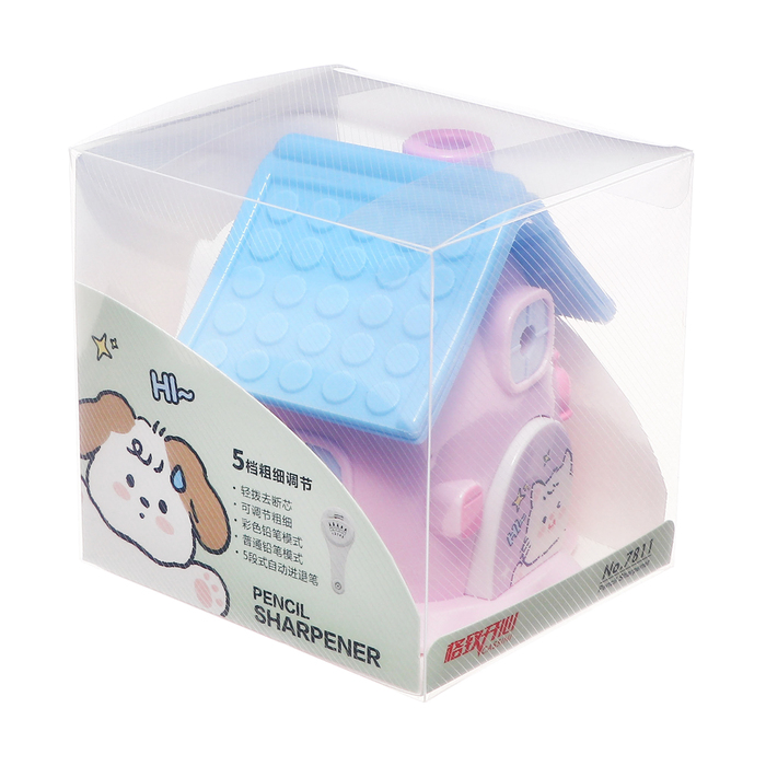 Mechanical sharpener with a container, 5 types of sharpening, lilac house