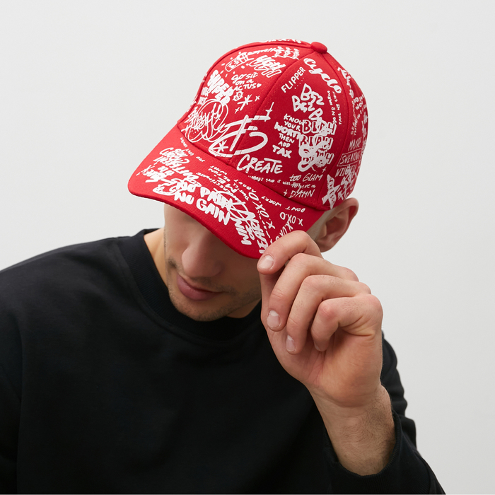 Menku cap with inscriptions, red color, rr 58