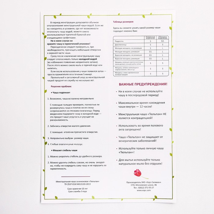 Silicone menstrual bowl tulip is a hygiene tool that will make your life easier. The menstrual bowl of tulip is an innovation that allows you not to think about menstruation even on the most crucial days. Its composition is hypoallergenic medical silicone high -quality and safe. Silicone cup collects all the discharge inside itself throughout the day. Set the kapa in the morning and only in the evening empty it. Sports, vacation, pool are available over any time. The shelf life is not limited. This will allow you not to spend money on other hygiene products- less environmentally friendly.