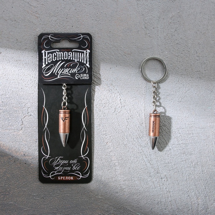 Metal keychain “Real man”, bullet, 1.2 x 6 cm