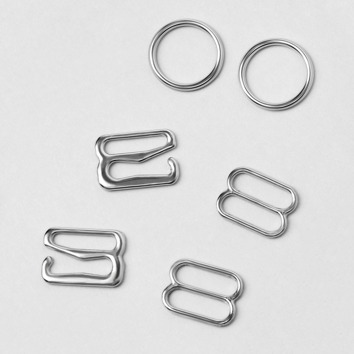 Metal straps: hooks, rings, regulators, 10 mm, silver color